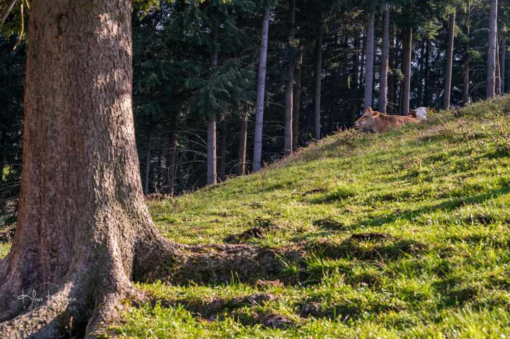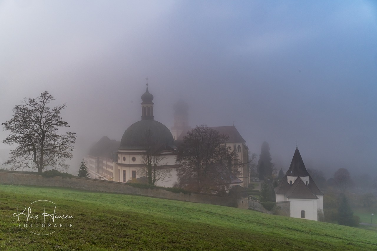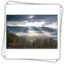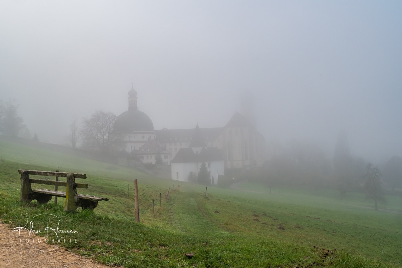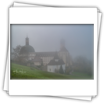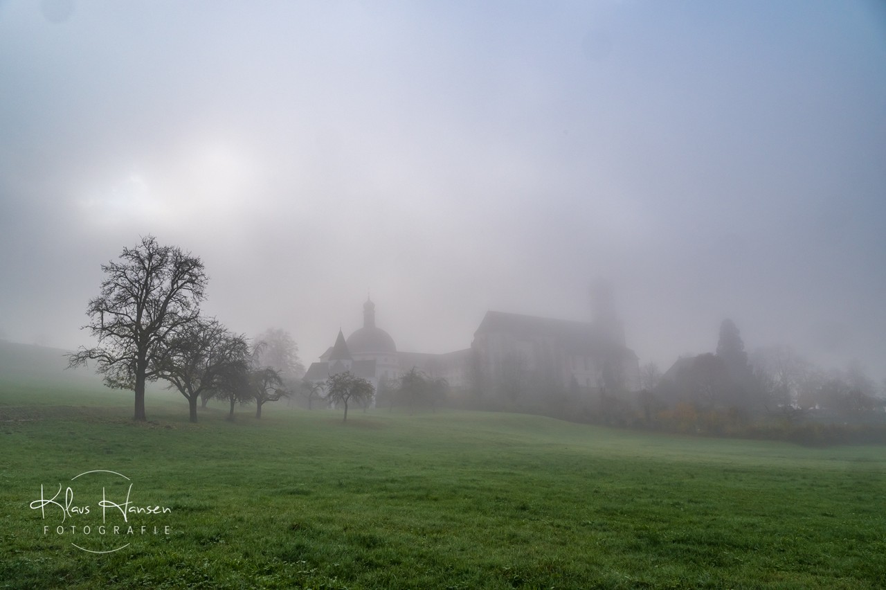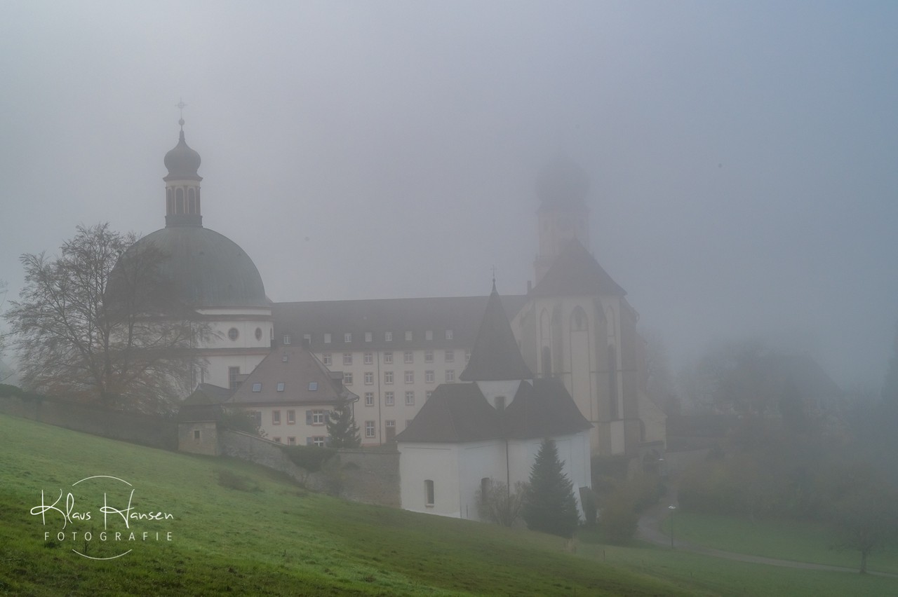 Das Münstertal Blick vom Köpfle St. Trudpert und Schauinsland an einem Tag. Im Nebel unten und oben der Sonnenuntergang über dem Wolkenmeer